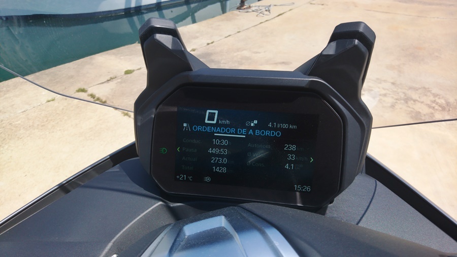 El paquete de opciones y accesorios que ofrecen los alemanes es inmenso, destacando la pantalla TFT de 6,5″ en color (que montaba la unidad de pruebas y que ofrece unas posibilidades nunca vistas en un scooter), ordenador de abordo Pro para sacar el mejor partido a las funciones de conectividad que permite la BMW Motorrad Connected App por medio del teléfono móvil (llamadas, música…) o mediante la propia app con función de navegador o información del vehículo y de viaje. También podemos montar una pantalla más elevada, parrilla portabultos, baúles de distintos tamaños, soporte para smartphone, asiento bajo, toma doble USB, alarma antirrobo, asiento y puños calefactables…